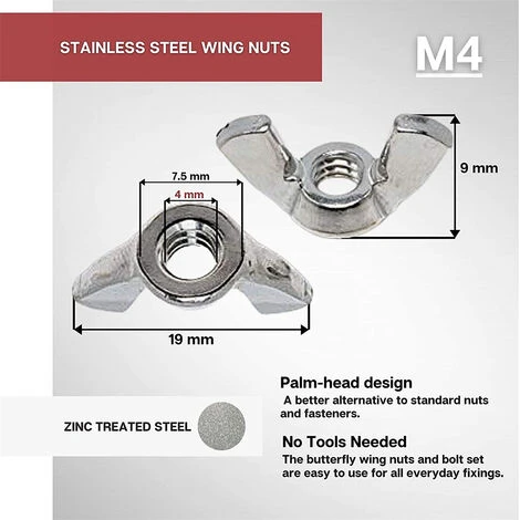 •Lot de 100 écrous à oreilles M4 pour répondre à vos différents besoins.