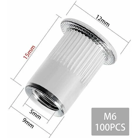 Ce produit contient 100 écrous en acier au carbone M6. L’écrou moleté facilite l’insertion dans les pièces et l’installation sur de nombreux types de matériaux, notamment l’acier, le plastique et la fibre de verre.