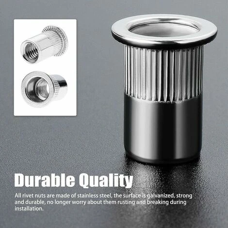 - 【Robuste et durable】: Les écrous à rivets filetés métriques plats sont fabriqués en acier inoxydable de haute qualité. Ils ont une résistance supérieure à la rouille, ce qui peut garantir une longue durée d’utilisation.