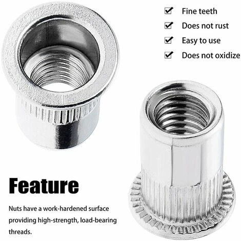 - 【Filetage Profond】: Ces écrous à rivets sont moletés avec un filetage profond à l’intérieur, qui sont efficaces pour fixer et antidérapants. L’écrou moleté facilite l’insertion dans la pièce à usiner.