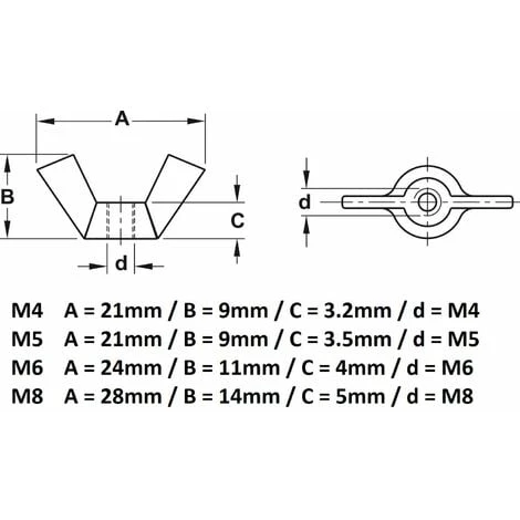10x écrou Papillon M8 Acier Forme Américaine à Oreille