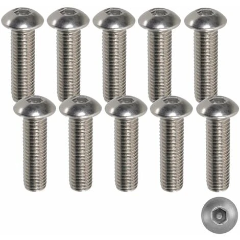 10x Vis Métaux Tête Bombée Hexagonal Creux BHC M5x16mm Acier Inoxydable A2 Filetage Total