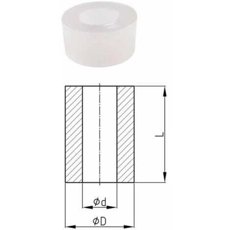 20x Entretoise ronde ; En plastique ; Couleur = Naturel ; DiamÚtre intérieur d = 3,2mm (M3) ; Hauteur L = 2mm ; DiamÚtre extérieur D = 5mm ; Polyamide ;
