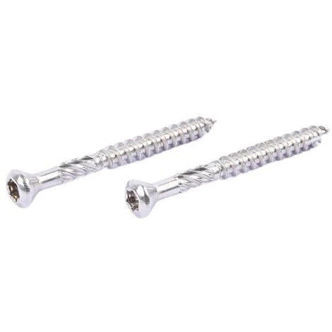 Tête réduite avec nervures fraisantes et empreinte TX qui évite la fissuration du bois en phase de serrage.