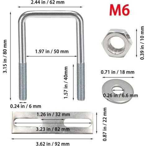 【Boulons de serrage M6】 Vous obtiendrez 4 jeux de boulons de serrage M6 d’une épaisseur de 6 mm, d’une longueur de 80 mm, d’une distance intérieure de 50 mm et d’une longueur de filetage de 40mm.