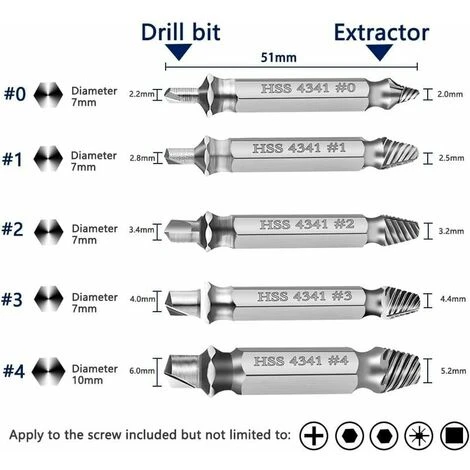 Large Application – Le kit d’extracteur de vis est destiné aux outils nécessitant le retrait de vis, y compris les boulons dans les applications de panneaux muraux, de bois et de tôle. Convient aux forets et vis ou boulons les plus courants de toute taille.