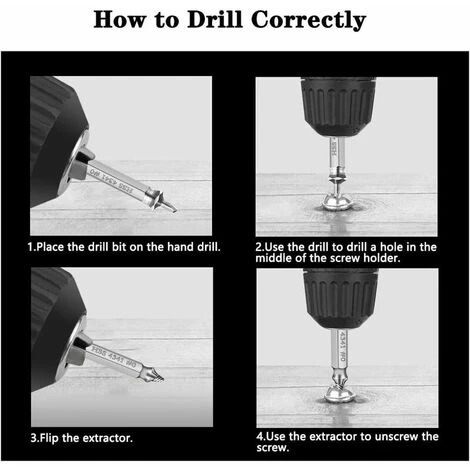 Facilité D’utilisation – Utilisez une perceuse pour percer un trou profond dans la tête de vis, puis tournez l’extracteur de vis dans le sens antihoraire sur la vis endommagée. Enfin, retirez les vis endommagées. Il est plus pratique qu’un tournevis double