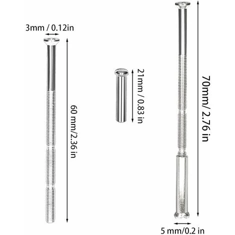 Longueur totale de la vis : 60 mm / 2,4 pouces
