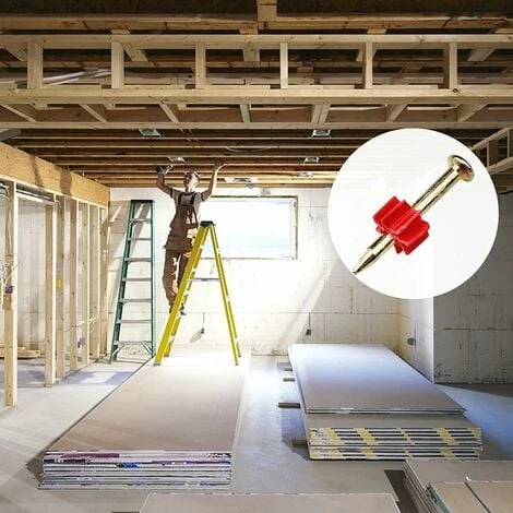 Positionnement du plastique rouge : En poussant le plastique jusqu’à la pointe du clou et en le martelant, il aide efficacement à localiser le clou à une position précise à un angle de 90° par rapport à la surface. Le plastique est suffisamment souple pour que vous puissiez enfoncer des clous dans le mur et retirer la partie rouge à la fin.