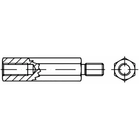 Article 88086 : Boulons d’écartement hexagonaux avec filetage interne et externe, acier, galvanisés, zingués, dimensions : M 4 x 50 / 8