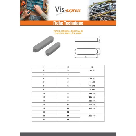 Diamètre = 8, Longueur = 7, Norme = DIN6885A VS7112 ISO2491A