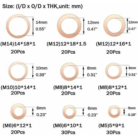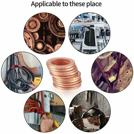 Facile utiliser Les joints toriques sont trs faciles installer, la surface de la rondelle plate en cuivre est lisse, rduit le frottement entre les fixations, empche les fuites, isole, empche le desserrage ou les fuites de pression.