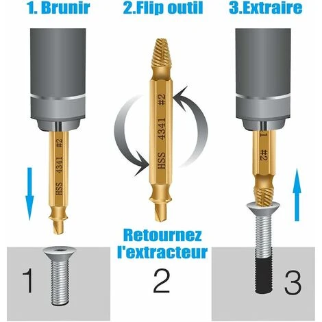 - 【Efficace】 Kit d’extraction de vis de haute dureté, vous pouvez facilement retirer la vis de viscose rouillée, cassée en quelques secondes