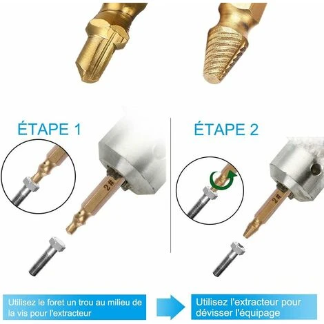 fréquemment utilisée - 【Facile à Utiliser】 Utilisez un foret pour percer un trou profond dans la tête de vis, puis inversez l’extracteur de vis dans le sens antihoraire dans la vis endommagée jusqu’à ce qu’il se libère