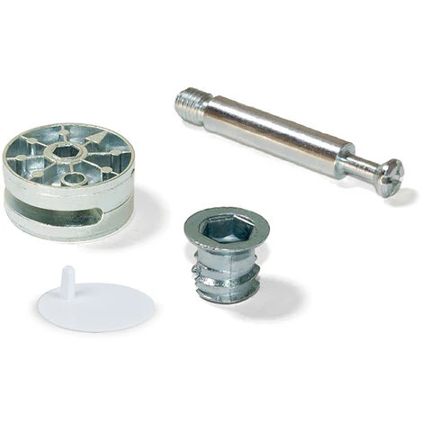 Systèmes d’assemblage pour meubles, structures pour armoires, lits et tables. Le système à excentrique apporte une fixation robuste et efficace pour des assemblages solides tout en permettant un démontage facile. Valables pour panneau de 20 mm d’épaisseur, le montage requiert un usinage afin de l’encastrer dans le panneau. Avec 35 mm de diamètre, ils disposent d’écrou et goujon à filetage métrique M8 pour le montage. Ce système apporte une fixation solide et résistante, tout en restant invisible grâce aux caches fournis qui bloquent l’excentrique pour plus de sécurité.