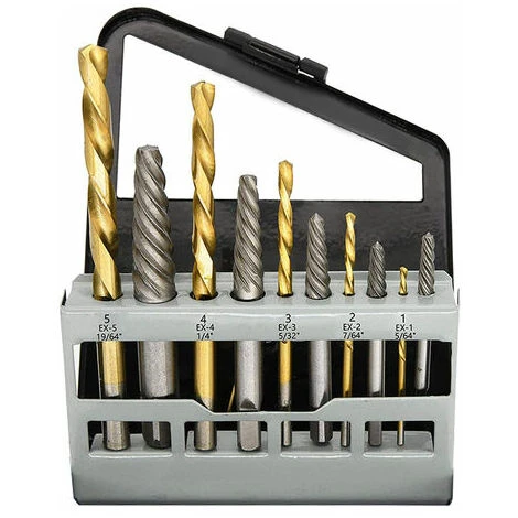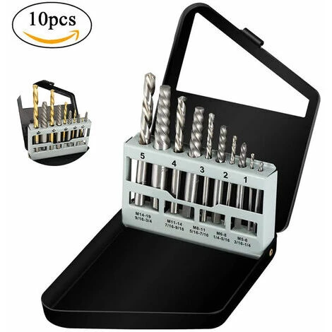 - Ensemble d’outils utiles de 10 pièces comprenant 5 forets à gauche et 5 extracteurs de vis en acier allié.