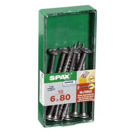 Lot de 10 vis acier tête fraisée bombée torx SPAX, Diam.6 mm x L.80 mm