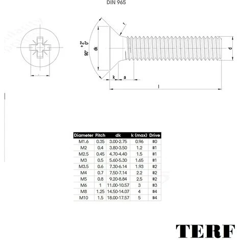 Pozi à tête fraisée Taille de la vis : M4 (4 mm) x 40 mm. Type de tête : Pozi Tête fraisée