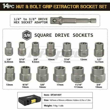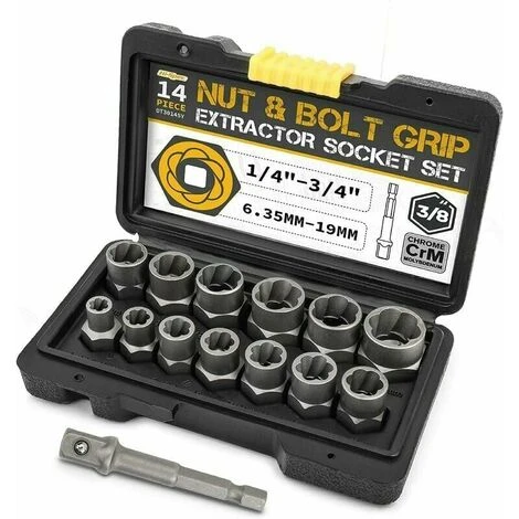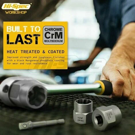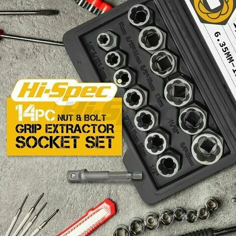 JUSQUA TRAVERSER DES NOIX : Avec des tailles de douilles de 6,4 mm / 1/4 19 mm / 3/4, le jeu de douilles pour extracteur d’crou et de boulon Hi-Spec offre des niveaux de couple levs sans glisser ni arrondir. utiliser avec une poigne de cl douille ou un outil lectrique, ou ses c?ts plats hexagonaux permettent une utilisation avec des cls molette, des cls et des pinces taux. Fabriqu selon des tolrances et des normes de fabrication strictes