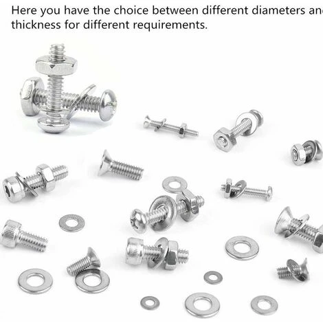 – Notre set comporte M2 X 50PCS, M2.5 X 50PCS, M3 X 50PCS,M4 X 50PCS,M5 X 50PCS, M6 X 50PCS, M8 X 40PCS, M10 X 20PCS.